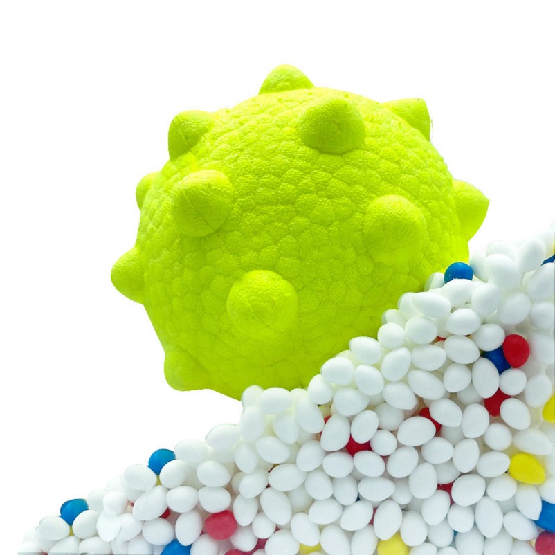The paw ball is formed from thousands of small particles of E-TPU heated by steam and is a durable dog toy. High resilience and floating on the water is the best organic dog chew toy. E-TPU claw balls have excellent resilience and excellent flotation. The raised claws are designed not to bounce in any direction once thrown. The tear-resistant E-TPU can withstand daily heavy chewing and is very durable for heavy chewing dog toys is a long lasting dog toy.
