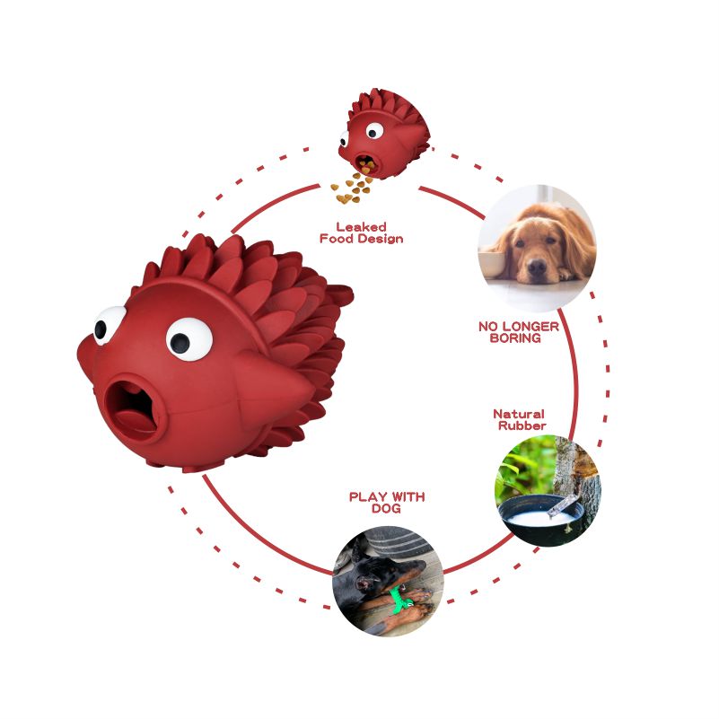 This is a rubber pet toy, different from other ordinary molar parts. Fish uniquely designed its scales to help dogs get a gentle, all-round tooth cleaning. The swirl-shaped leak of the fish mouth can be inserted into some treats as a dog treat dispenser, making dogs extremely interested and curious about it. Chew and nudge. Flexible natural rubber has proven to be the best material to satisfy a dog's normal chewing cravings is an eco-friendly dog toy.